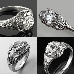 - Art Deco style jewelry features a wide range of diamond ring settings.