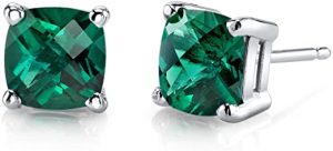 - THE PERFECT WOMEN’S EARRINGS – The Peora Created Emerald earrings for ladies are set with heavy quality prongs and are elegant for everyday use or special occasions. It’s made of 14K White Gold that’s both sturdy and precious, and it has secure friction backs so you can wear it all day. The stone has a checkerboard faceting that shines brightly from every angle. It is safe for sensitive ears to use hypoallergenic earrings.