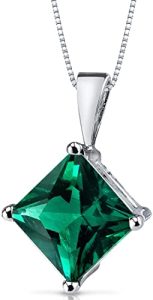 - WOMEN’S CLASSIC SOLITAIRE GOLD PENDANT – With our Peora 14K Gold Pendants Collection, we’ve given the traditional solitaire favorite a vibrant twist. With its trademark rich Forest Green tint for a magnificent radiance, Peora Created Emerald, Princess Shape, 8mm, 2.25 Carats is featured. Set in 14 karats white gold for optimum gleam from all angles. This gold pendant is a jewelry must-have since it is versatile, feminine, and flattering.