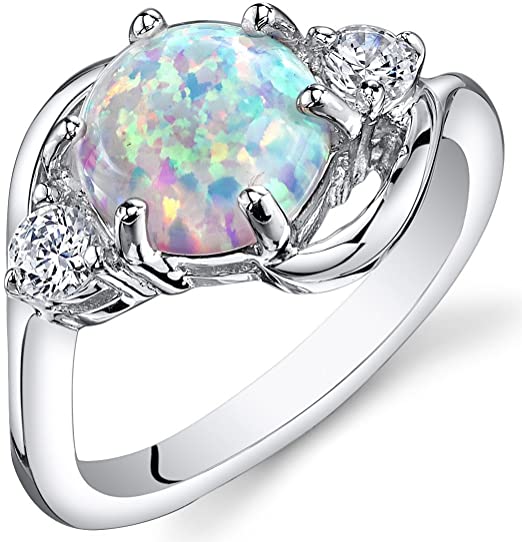- UNIQUE DESIGN- This trendy and attractive 1.75 carat Sterling Silver Ring with an 8mm Round cut Peora Created White Opal with a multi-dimensional iridescent tint is the ideal everyday accessory. Premium Grade Cubic Zirconia gives it a beautiful sparkle in the sun. This is a must-have item for any wardrobe.