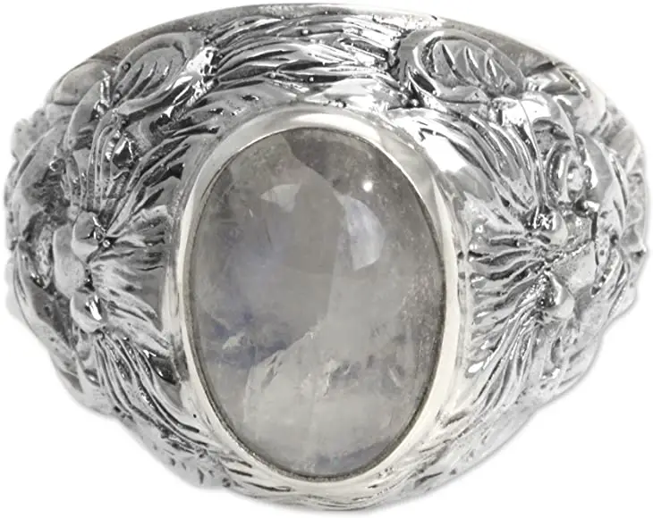 NOVICA Rainbow Moonstone .925 Sterling Silver Men’s Ring ‘Lion Charisma’