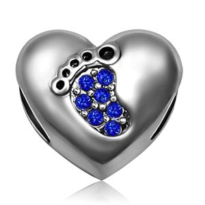 JMQJewelry Christmas Heart Baby Love Birthstone Footprints September Blue Dangle Charms for Bracelets