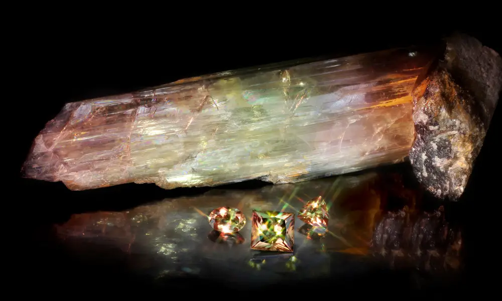 Although smaller gems appear to be less color-saturated, all Zultanite is pleochroic, which means different colors can be seen when the gemstone is viewed from different angles. Green, gold, and pink are some of the colors available. The incredible Zultanite: Zultanite is a color change gemstone, in addition to the different colors seen through dispersion and pleochroism. The gem is a lovely kiwi to lime green in the daylight. Zultanite will gradually change from champagne to cinnamon, peach, and occasionally a cherry-pink when exposed to low indoor or candlelight. These colors are best seen in daylight with 6500K fluorescent lighting and candlelight with very low wattage 25W incandescent clear bulbs or decorative tube lighting.